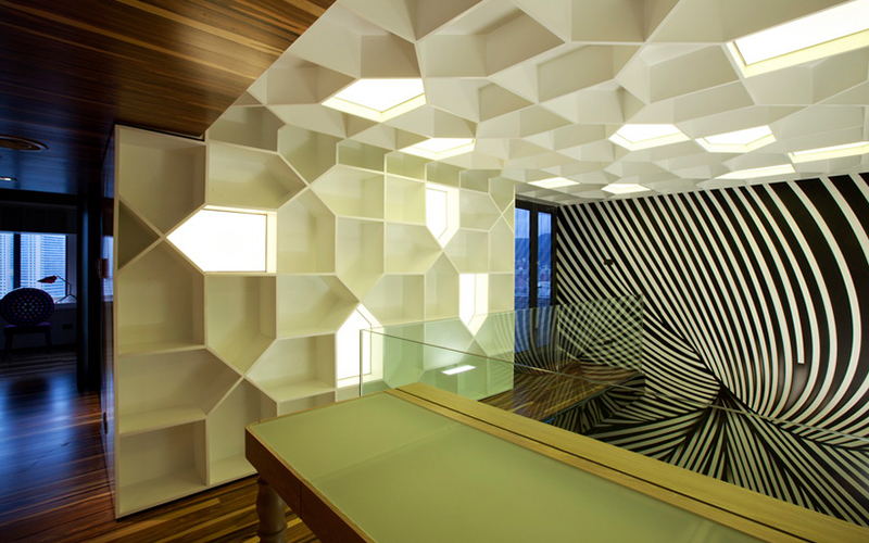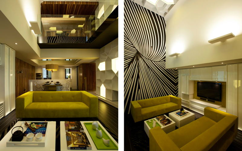 - 都市生活是快節(jié)奏的樂章,簡潔有力則是這篇樂章最相稱的和弦音。本案中設(shè)計(jì)師緊扣簡約、雅致的風(fēng)格調(diào)性,在開辟出強(qiáng)大的使用功能和儲物功能的同時(shí),對這個(gè)復(fù)式小樓重新做出戲劇性的布局: 開放式的廚房和加長的島臺使得家人、朋友可以盡享互動(dòng)的樂趣;極富樂感黑白線條放肆的流動(dòng)游走,白得極致的格子書柜貫穿二層的開放式書房甚至布滿整個(gè)天花;一個(gè)運(yùn)用清玻和黑色鏡鋼以及玉砂夾膠鏡搭建的跨越客廳上空的L形天橋,讓動(dòng)靜分明的功能分區(qū)也由此而獲得自然的過渡,空間也因此有了極強(qiáng)的層次感。而那一抹極為耀眼的芥末黃更是變成了樂譜上跳動(dòng)的音符,劃破了本來的寧靜,為這個(gè)家?guī)砹松畹膼倓?dòng)。精心的構(gòu)思及巧妙的用色,使得整個(gè)空間宜動(dòng)宜靜,樂活而又型格。