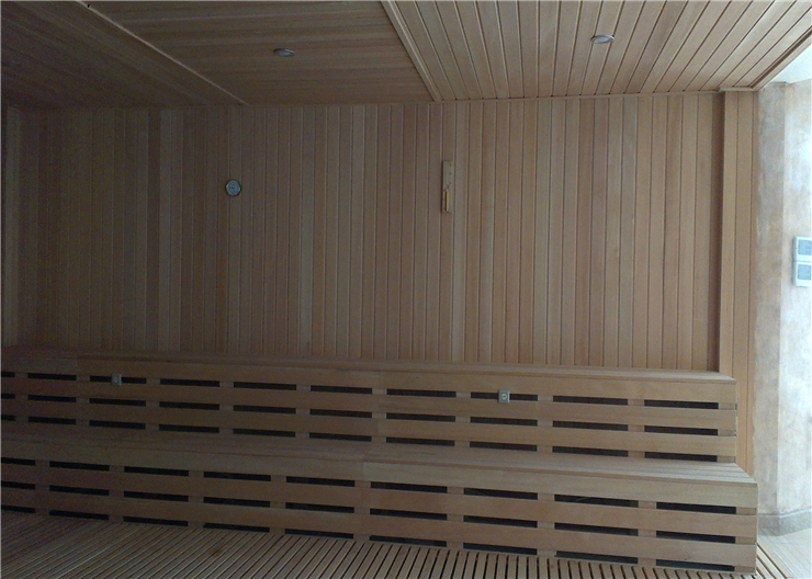 桑拿房采用進(jìn)口桑拿爐及配件,房體使用歐洲白松木,經(jīng)特殊加工,現(xiàn)場(chǎng)制作安裝。